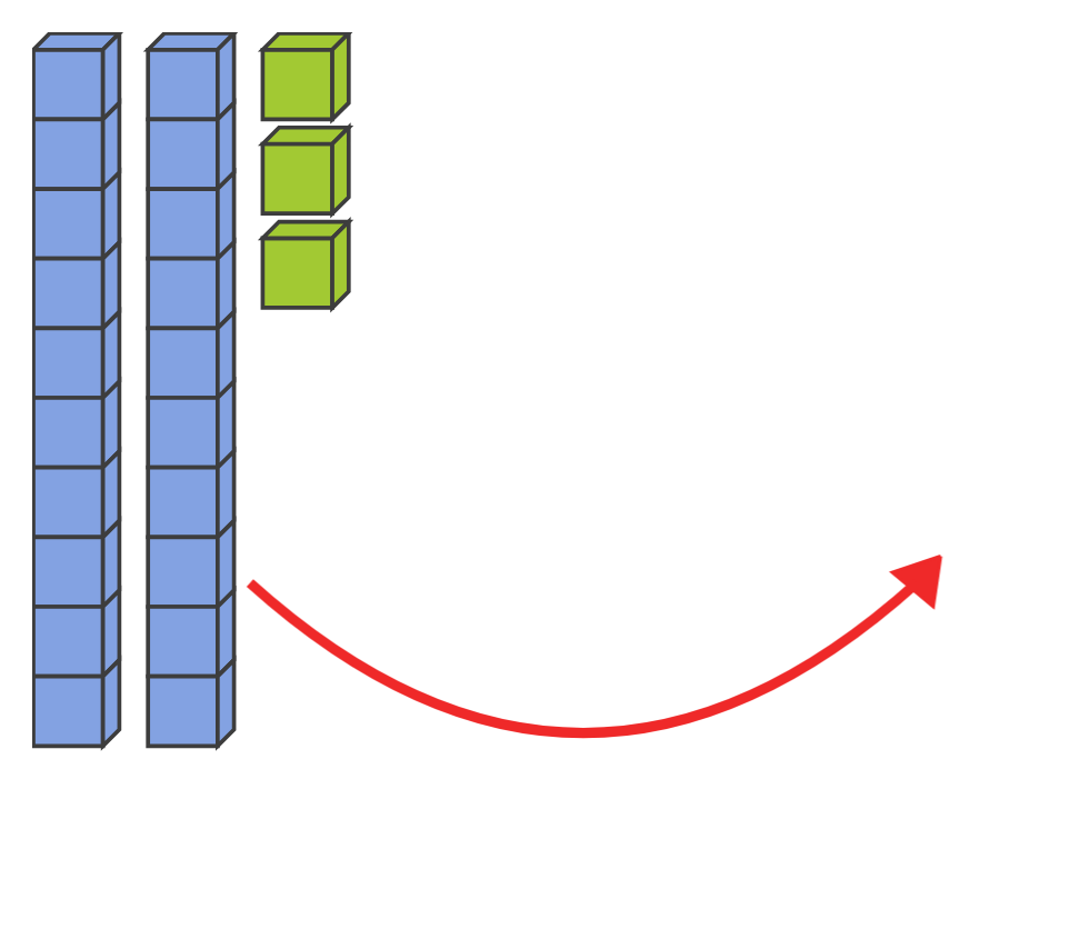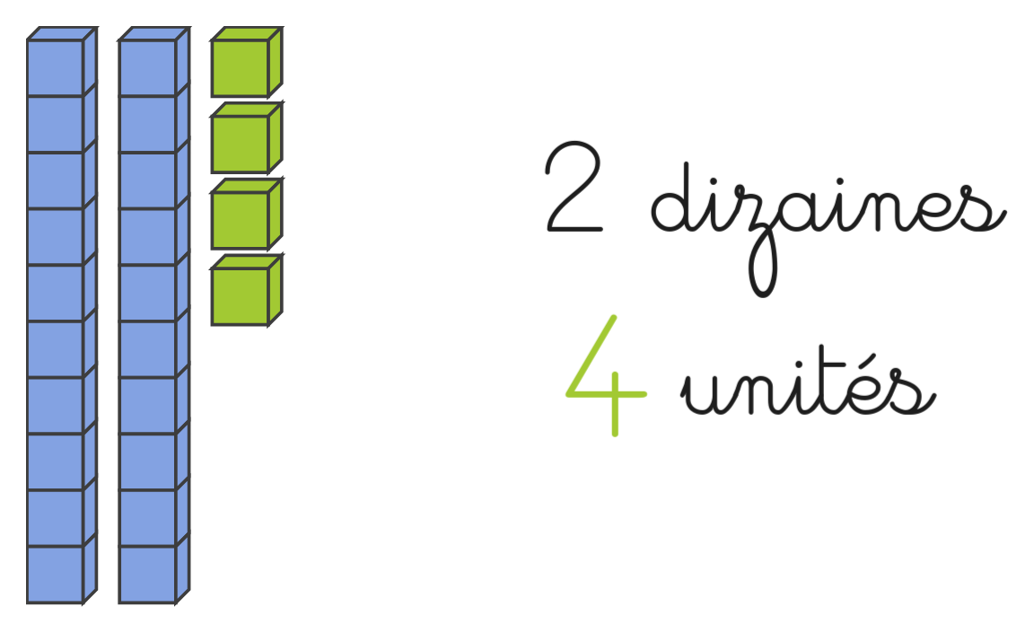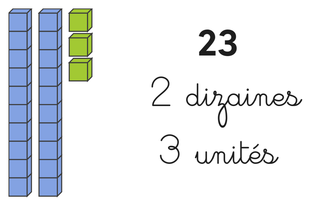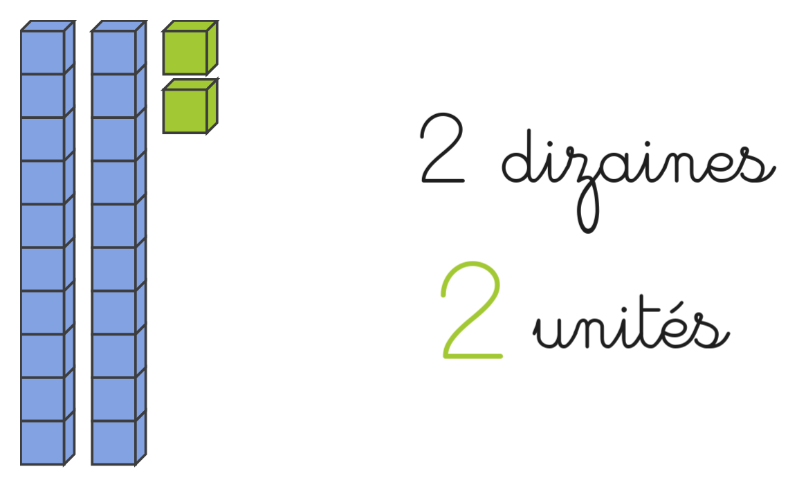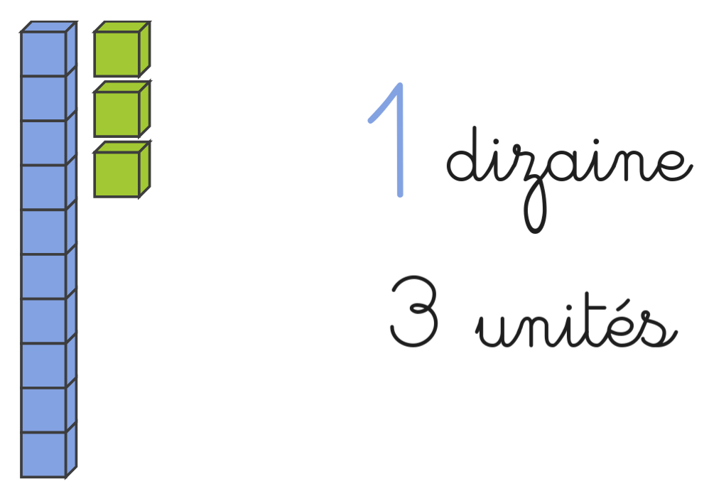 Chaque barre de 10 cubes bleus est une dizaine.