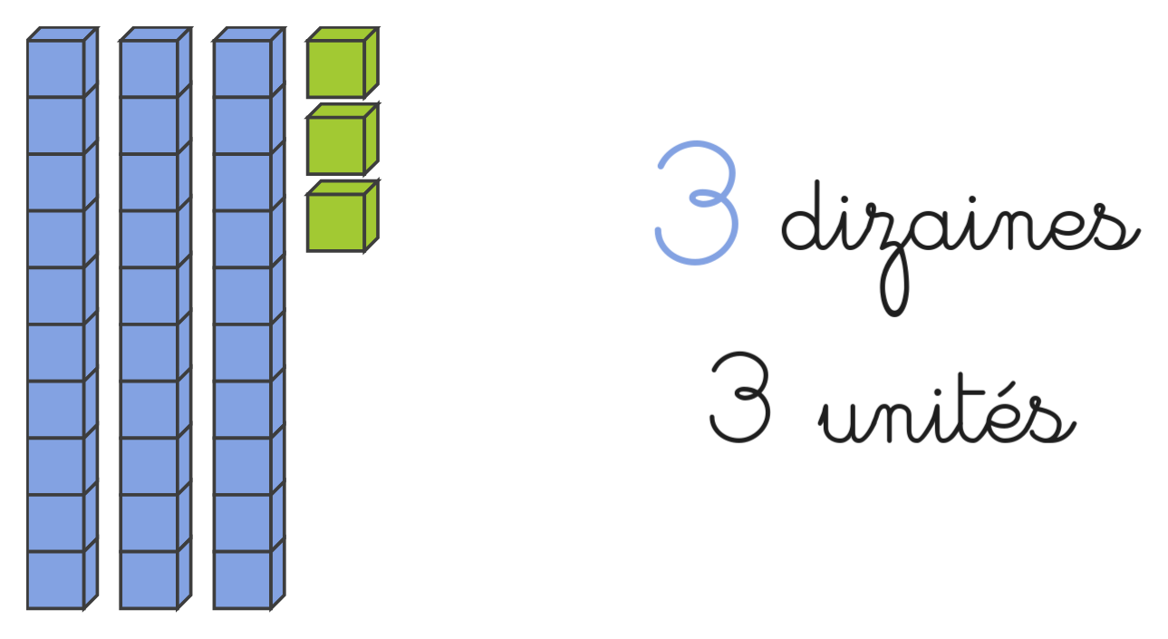 3 dizaines valent 30.